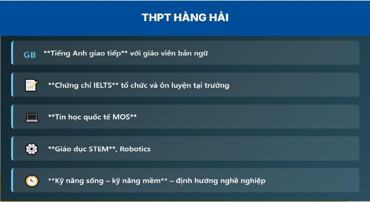 Dưới đây là 10 đặc điểm nổi bật tạo nên thương hiệu của Trường THPT Hàng Hải: