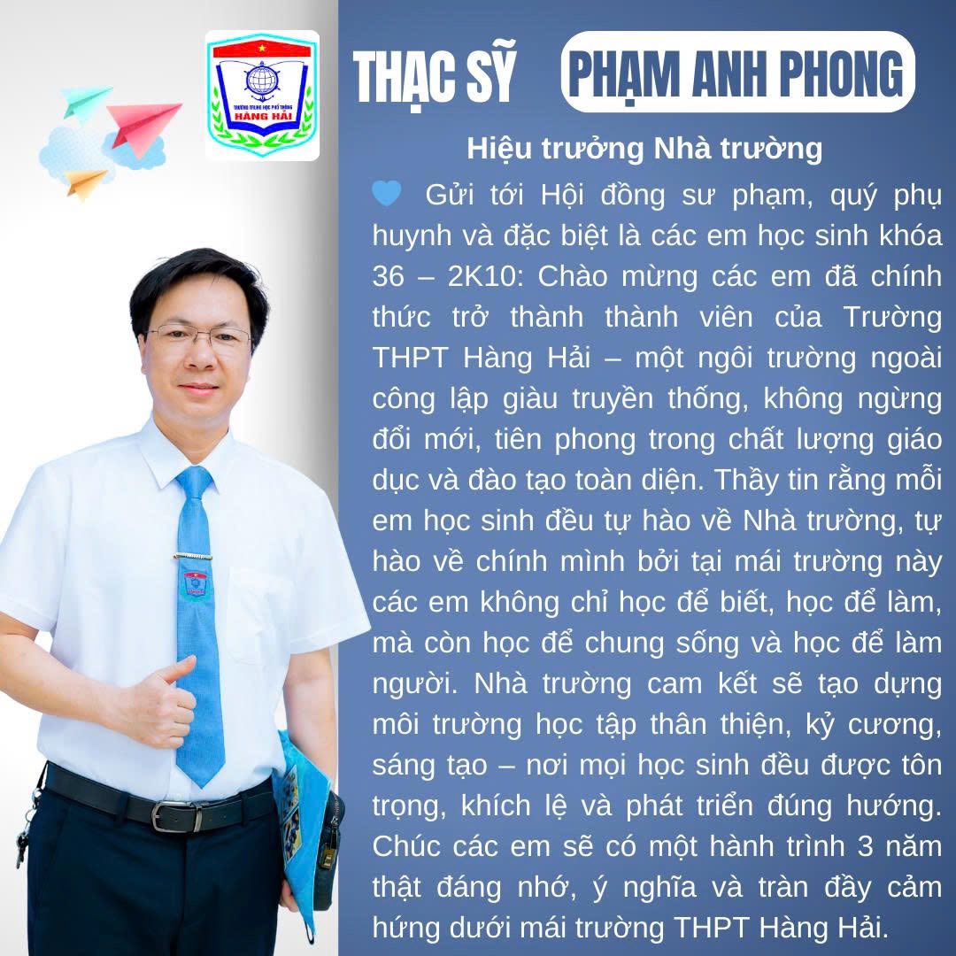 Dưới sự lãnh đạo của Ban Giám Hiệu, Trường THPT Hàng Hải tiếp tục khẳng định uy tín, chất lượng và truyền thống 36 năm xây dựng, phát triển – xứng đáng là nơi chắp cánh tri thức, khơi dậy khát vọng và hướng tới tương lai.