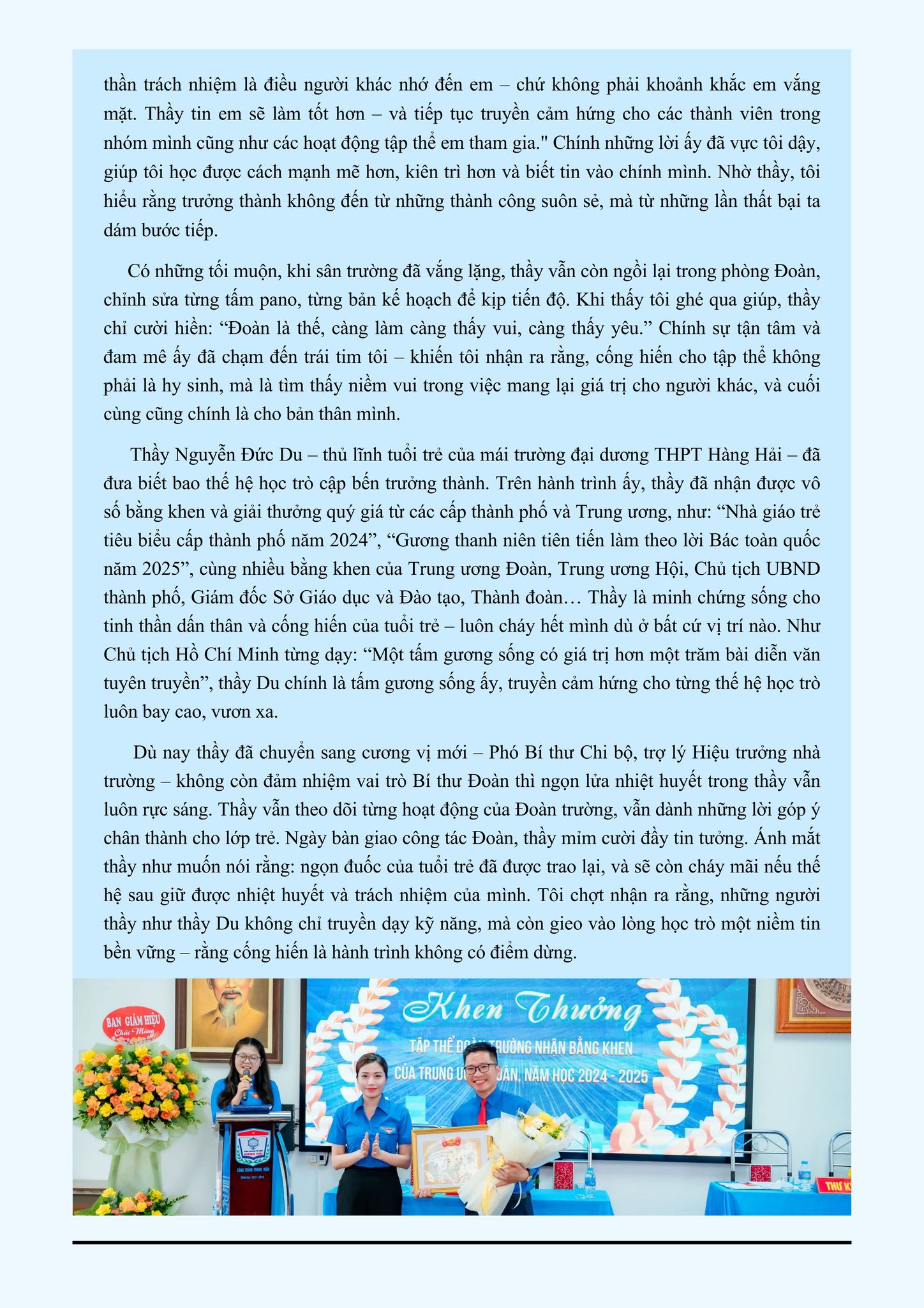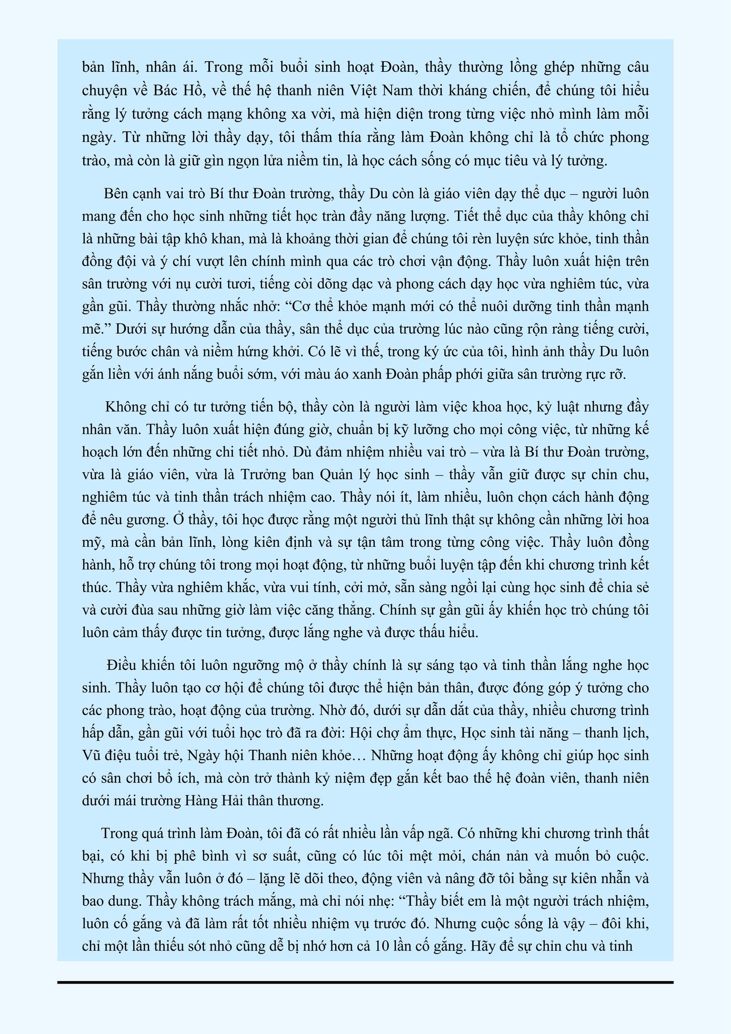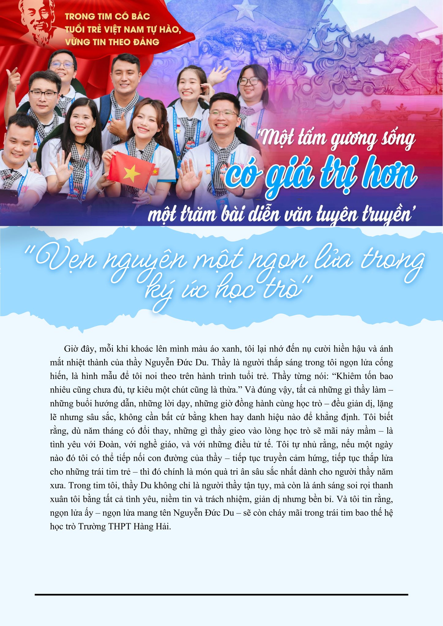 Bài viết không chỉ chạm đến trái tim của Ban Giám khảo mà còn gợi lên những ký ức đẹp đẽ về tình thầy trò nơi mái trường THPT Hàng Hải.